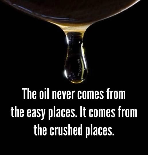 Die proses waardeur olywe geslaan en fyngedruk word om olyfolie te produseer, bevat ook geestelike betekenis. Jesus Christus is aan die kruis geslaan en fyngedruk sodat Sy Heilige Gees op die kerk uitgestort sou word na Sy hemelvaart. In wese is Jesus Christus God se olyfboom, en die Heilige Gees, Sy olyfolie. Dit is nie bloot toevallig dat Christus se folterende gebed, net voor Sy arrestasie, in Getsemane plaasgevind het nie, ‘n plek met baie olyfbome en wie se naam “olyfpers” beteken.