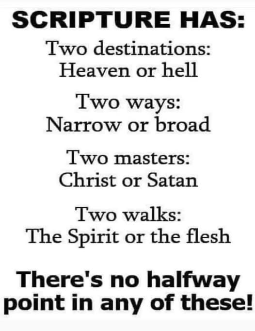 Johannes 3:16–18 sê: “Want so lief het God die wêreld gehad dat Hy sy eniggebore Seun gegee het, sodat elkeen wat in Hom glo, nie verlore sal gaan nie, maar die ewige lewe sal hê. Want God het sy Seun nie in die wêreld gestuur om die wêreld te veroordeel nie, maar om die wêreld deur Hom te red. Elkeen wat in Hom glo, word nie veroordeel nie; maar elkeen wat nie glo nie, is reeds veroordeel omdat hy nie in die Naam van die eniggebore Seun van God geglo het nie.” Afgesien van die werk van Jesus Christus, word elke mens veroordeel tot ‘n ewigheid in die hel (Openbaring 20:15). Maar God het die gawe van die hemel vrylik aangebied. Wat bepaal of ‘n persoon vir ewig hemel of hel toe gaan, is of daardie persoon deur Jesus Christus met God versoen is (Romeine 4; Galasiërs 3:23–29; Hebreërs 11).